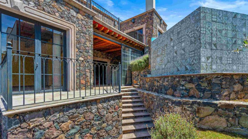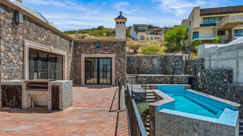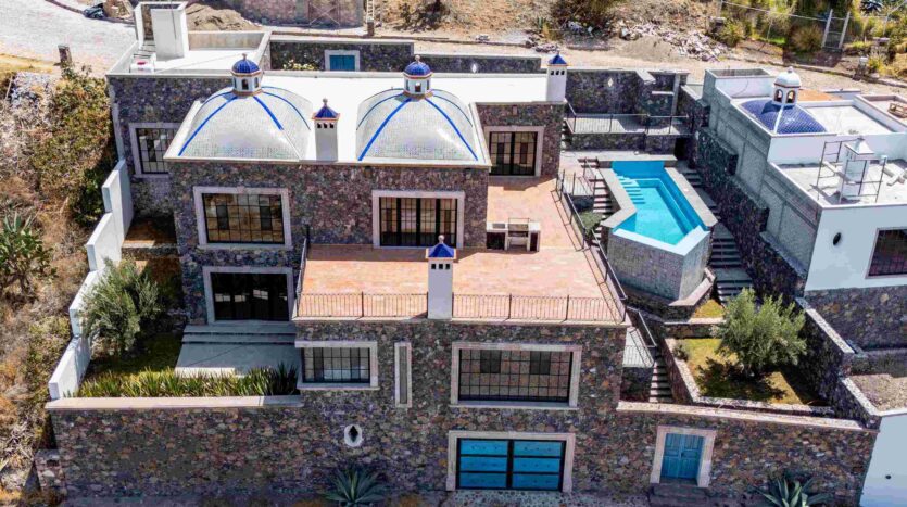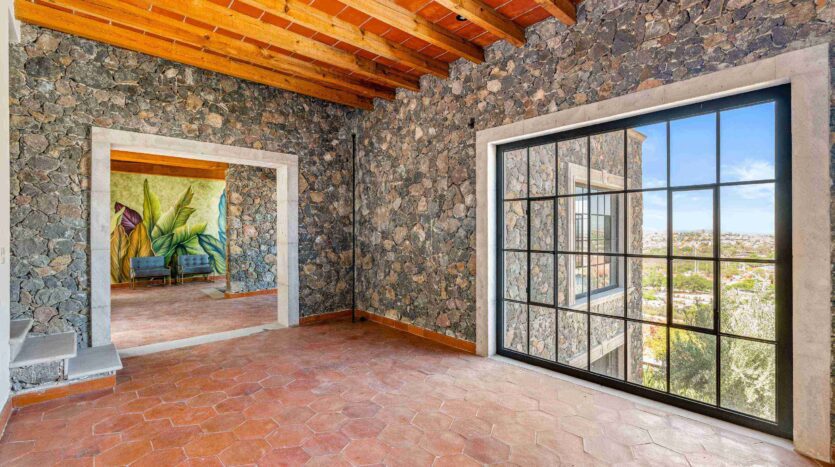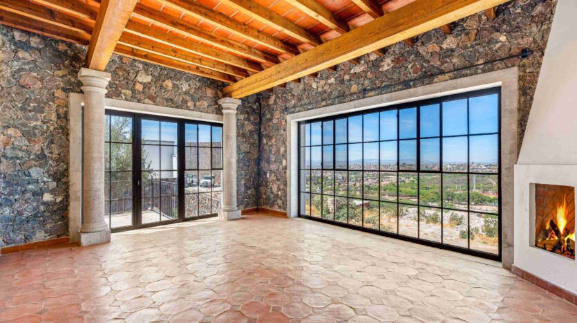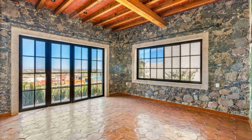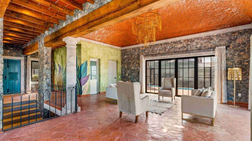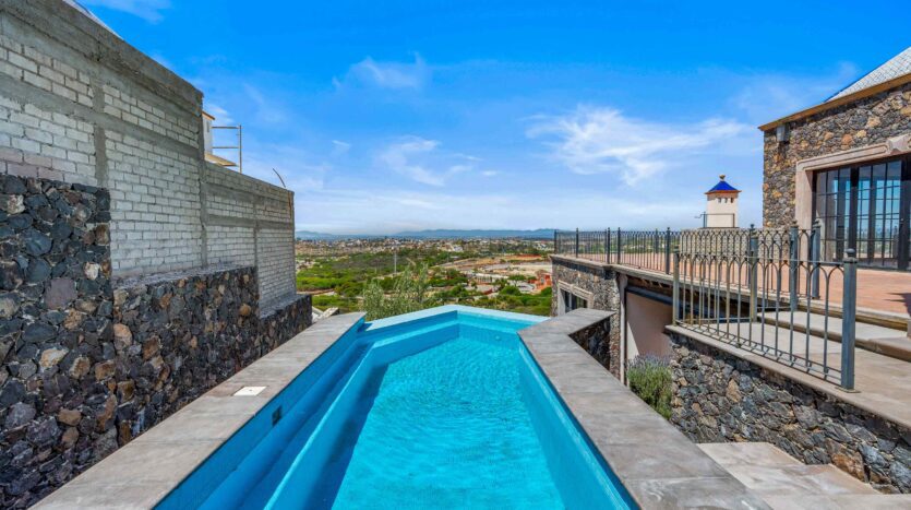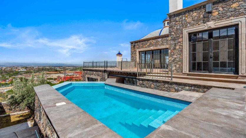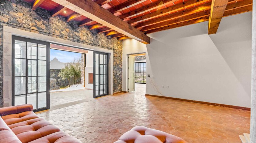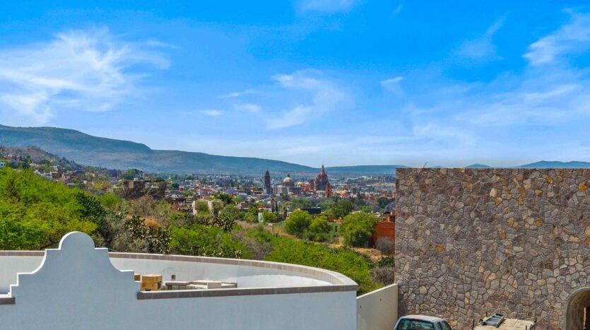 Golden Homes is honored to present Bella Vista, a spectacular new 4 bed / 4.5 bath home featuring large gardens, an infinity pool, and dramatic views of Centro skylines and western mountains from multiple levels. Located just 5 minutes drive from Centro in the exclusive community of La Bella, the property is an exemplar of the Mexican contemporary style with hand-hewn stone walls, wood beamed ceilings, and enormous plate glass windows that bathe the spacious and comfortable interiors in a soft natural light. The considerable 751m2 lot sits directly above the Parque Zefferino and the new commercial development of Pueblo Bonito in an area that is poised to become on of San Miguel’s most desirable, oferring quick access to Centro, Las Ventanas Golf Course and the “Golden Corridor” of wineries, ranches and hotsprings found along the newly constructed highway to Dolores Hidalgo. Priced to sell at $600,000 usd Casa La Bella is truly a must-see – a dramatic and spacious property that simply must be experienced.