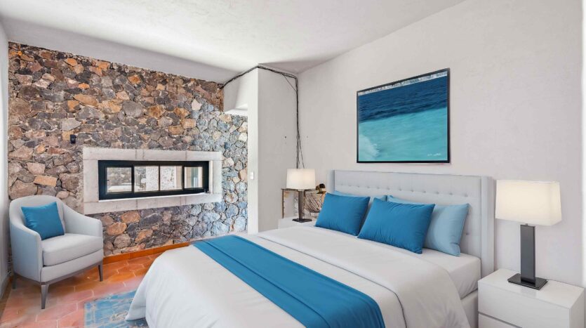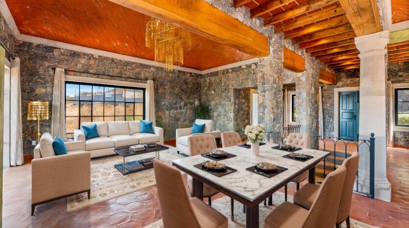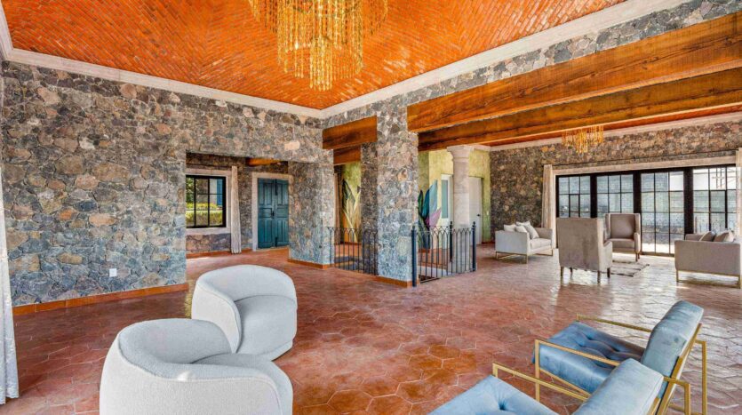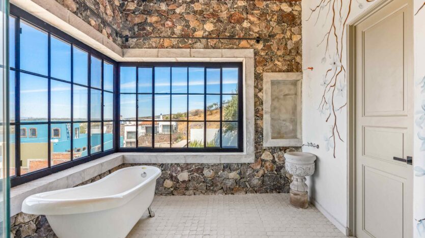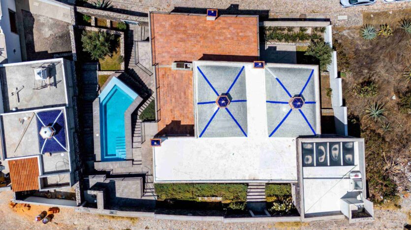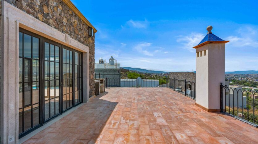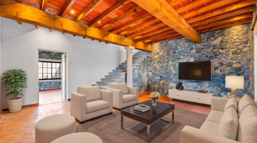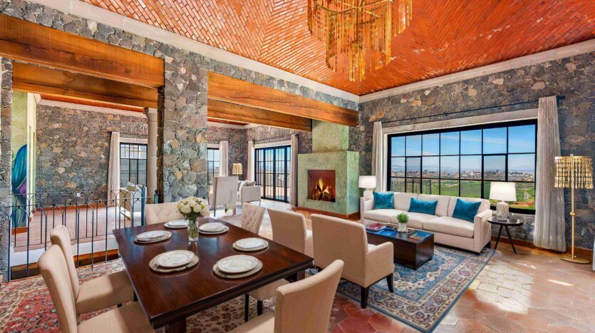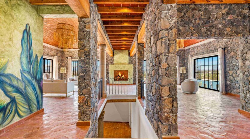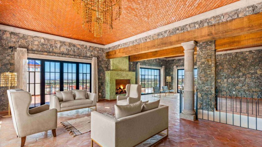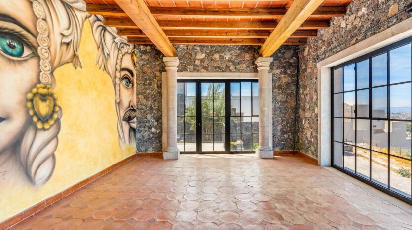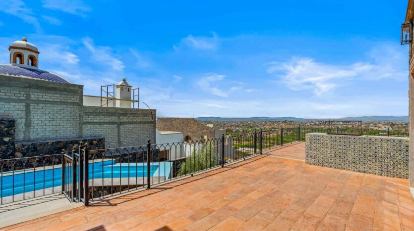 Golden Homes is honored to present Bella Vista, a spectacular new 4 bed / 4.5 bath home featuring large gardens, an infinity pool, and dramatic views of Centro skylines and western mountains from multiple levels. Located just 5 minutes drive from Centro in the exclusive community of La Bella, the property is an exemplar of the Mexican contemporary style with hand-hewn stone walls, wood beamed ceilings, and enormous plate glass windows that bathe the spacious and comfortable interiors in a soft natural light. The considerable 751m2 lot sits directly above the Parque Zefferino and the new commercial development of Pueblo Bonito in an area that is poised to become on of San Miguel’s most desirable, oferring quick access to Centro, Las Ventanas Golf Course and the “Golden Corridor” of wineries, ranches and hotsprings found along the newly constructed highway to Dolores Hidalgo. Priced to sell at $600,000 usd Casa La Bella is truly a must-see – a dramatic and spacious property that simply must be experienced.