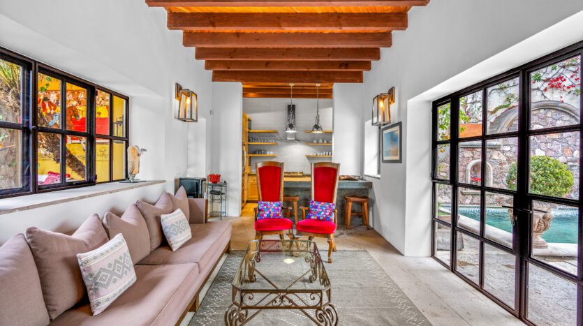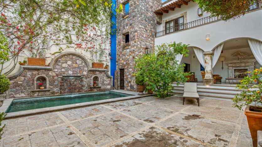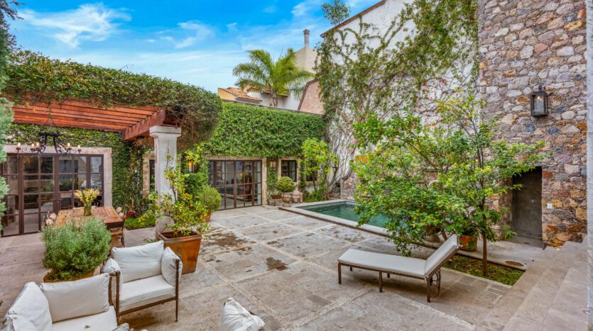 Discover Timeless Elegance Meets Modern Luxury in San Miguel de Allende Step into a masterpiece of design and comfort nestled in the enchanting Callejón del Pueblito, just steps away from the iconic Jardín Principal. This exquisite residence redefines luxury living with its seamless blend of traditional colonial charm and contemporary sophistication—perfect for those seeking an unforgettable short-term retreat. Boasting 4 spacious bedrooms , each with its own en-suite bathroom, this home ensures privacy and relaxation for every guest. An additional half-bath adds convenience, while the thoughtfully designed layout invites you to live effortlessly. The heart of the home is its stunning open-concept living area , where floor-to-ceiling windows frame breathtaking views of the central patio and create a warm, inviting ambiance. Entertain in style with a fully equipped gourmet kitchen that inspires culinary creativity, or step outside to your private oasis. The lush patio features a dining area perfect for al fresco meals, while the adjacent lounge area—complete with a cozy fireplace—offers serene views of the garden, creating an idyllic spot to unwind. For those who love to bask in the sun, the shimmering pool awaits, offering a refreshing escape under the San Miguel skies. And when it’s time to elevate the experience, head to the rooftop terrace for unparalleled panoramic views that capture the essence of this magical city. Every detail of this property exudes luxury, from its high-end finishes to its carefully curated design elements that honor San Miguel’s rich heritage while embracing modern innovation. Whether you’re enjoying a quiet morning by the fireplace, hosting an evening soirée under the stars, or simply soaking in the beauty of the surroundings, this home promises an experience like no other. Ideally located just a few blocks from the vibrant Jardín Principal, you’ll have effortless access to San Miguel’s world-renowned restaurants, art galleries, and cultural landmarks. Yet, within these walls, you’ll find a sanctuary of peace and refinement—a true haven for discerning travelers. Perfect for short-term rentals, this property is more than just a stay—it’s a lifestyle. Are you ready to make memories in one of San Miguel de Allende’s most captivating homes? Welcome to your dream getaway.