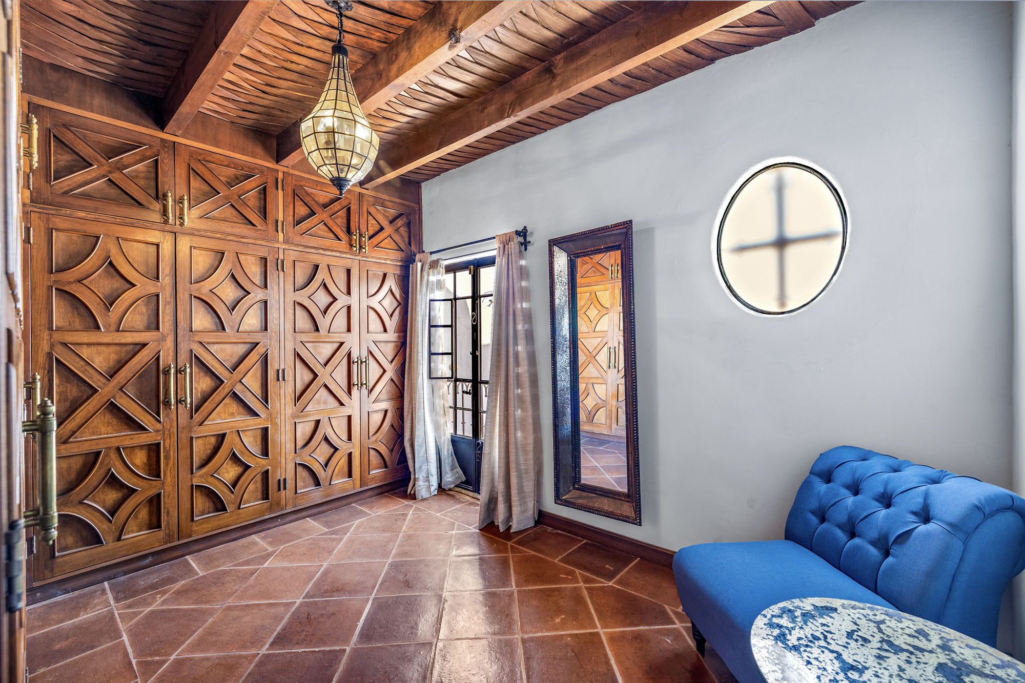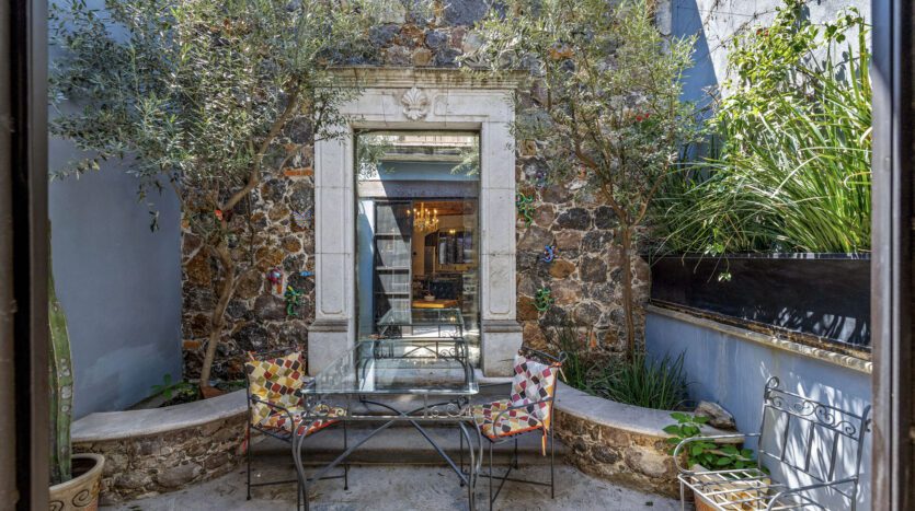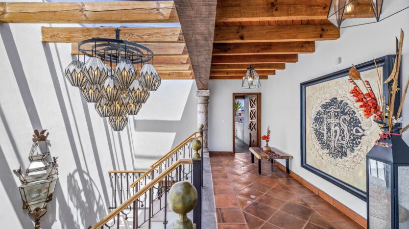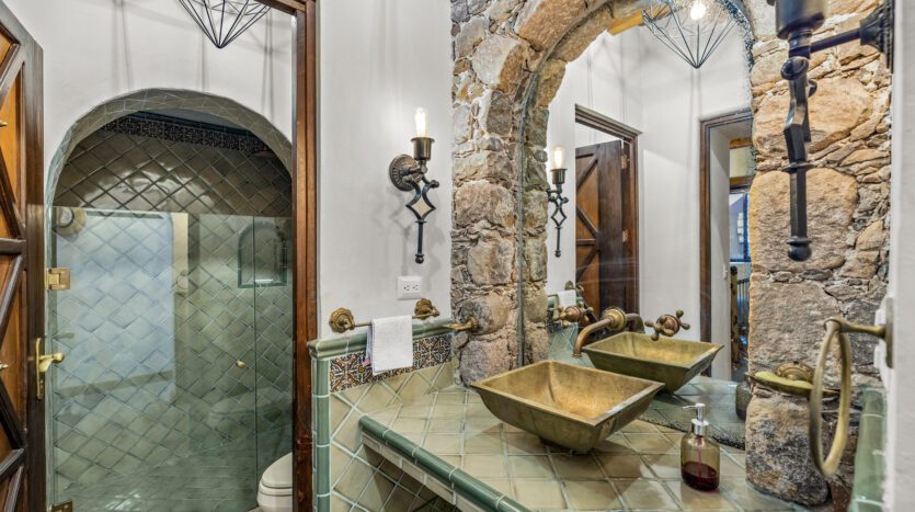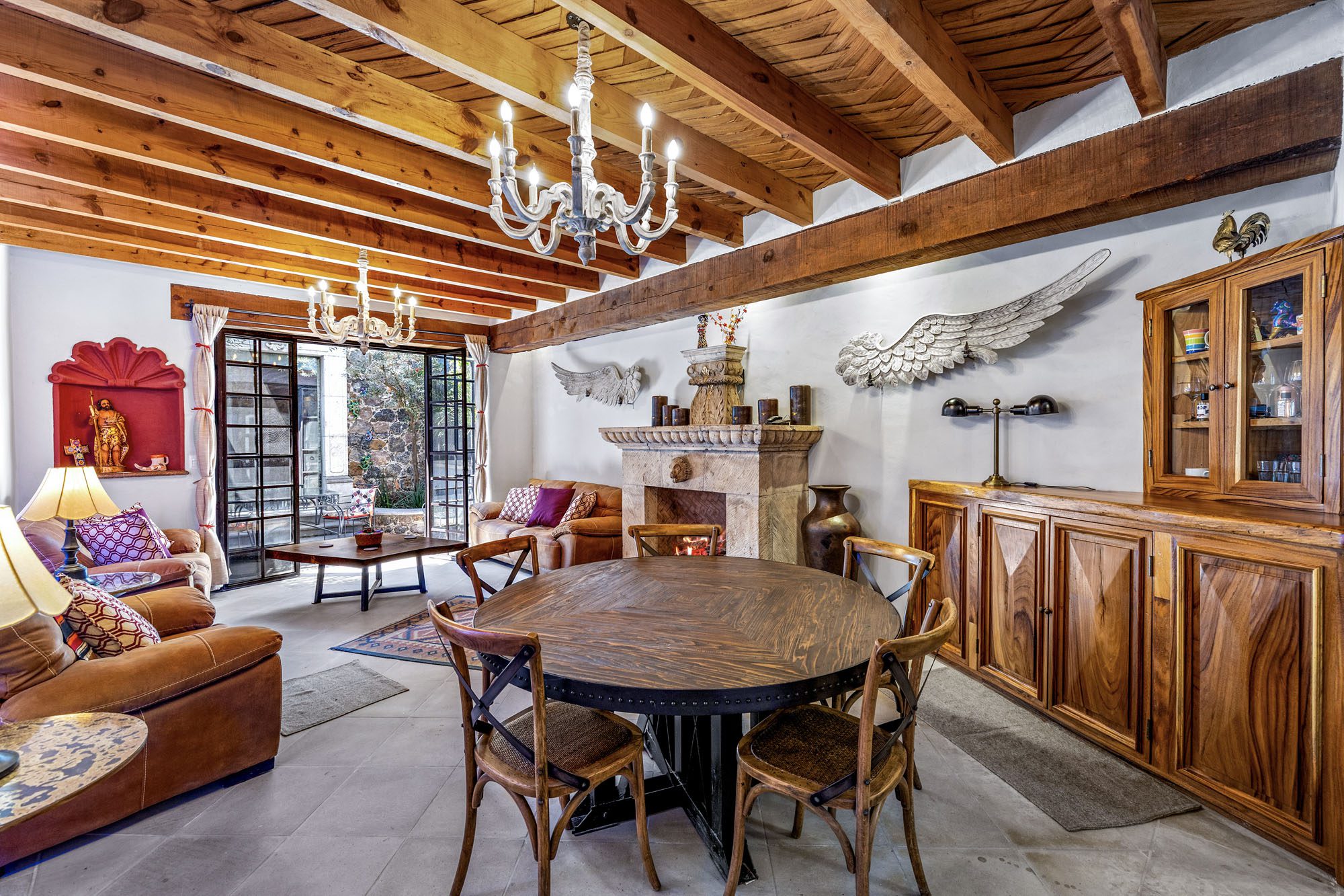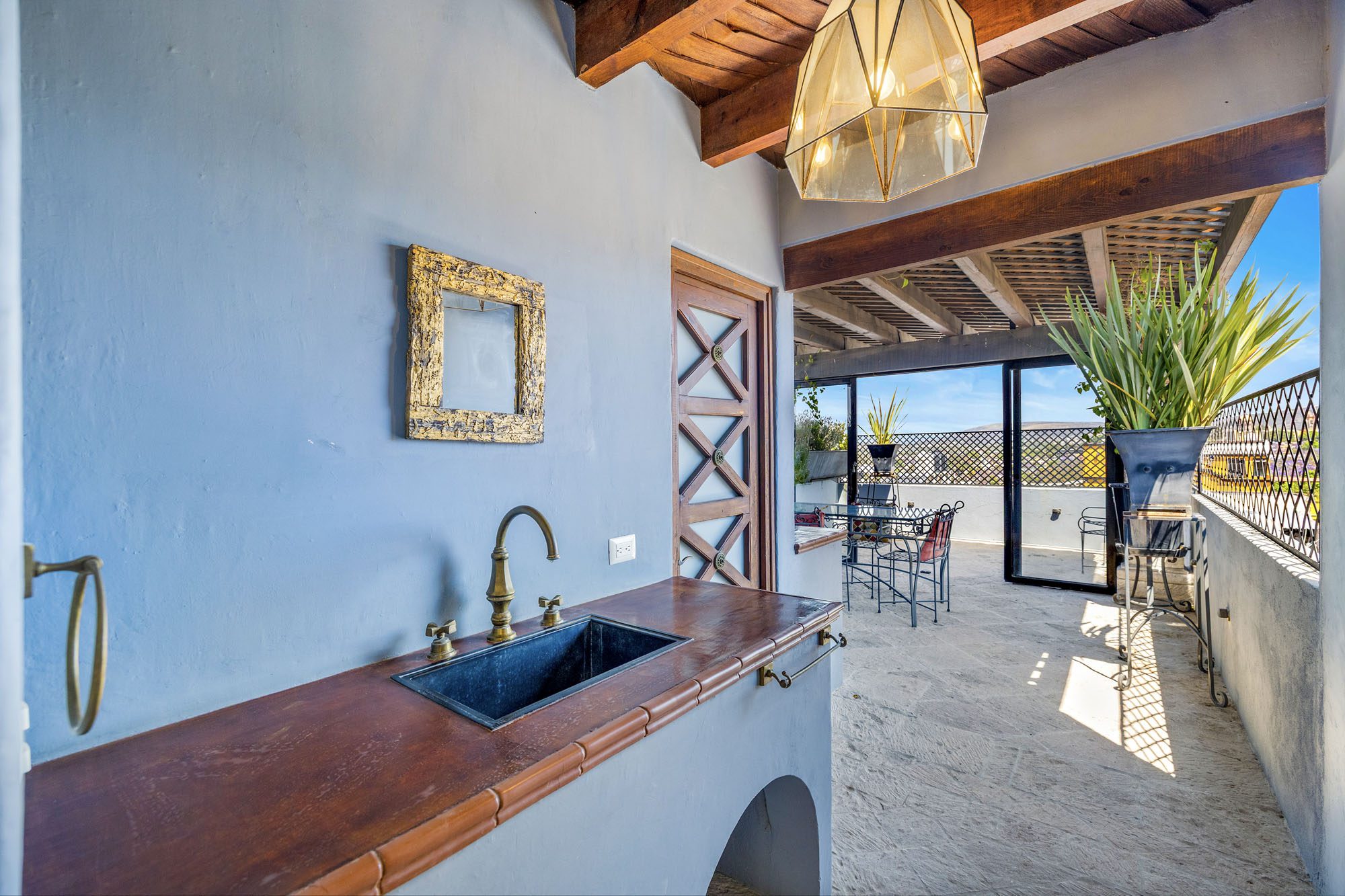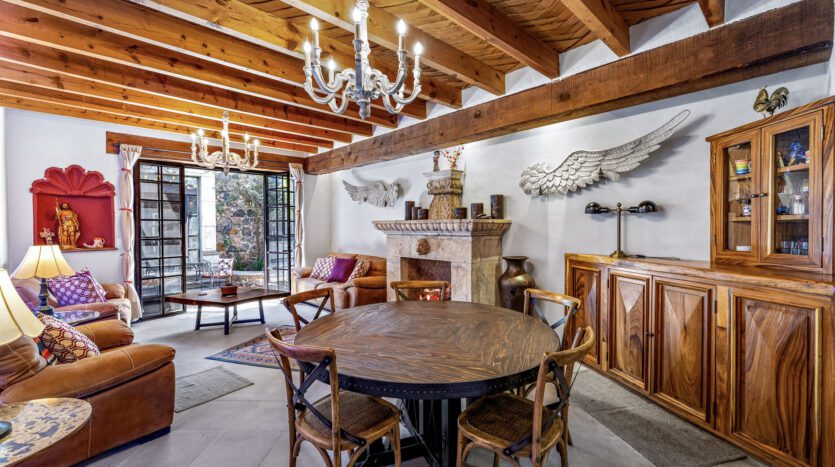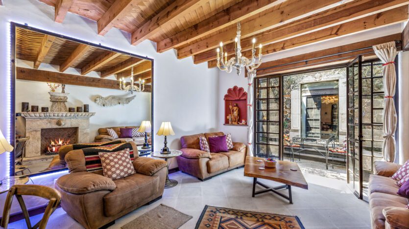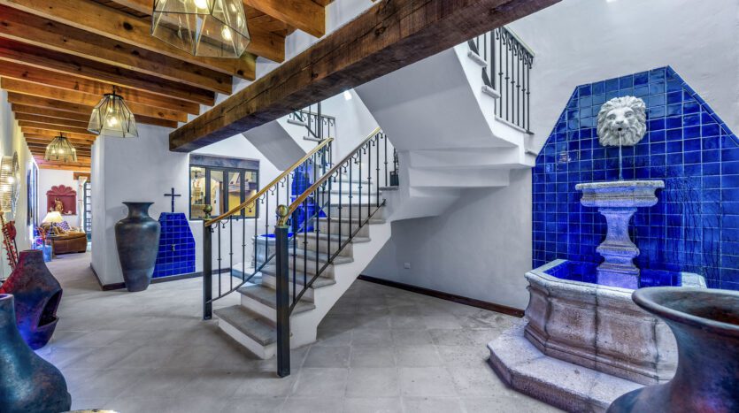 The home’s thoughtful architecture prioritizes “effortless living,” featuring a coveted ground-floor suite and a layout that flows toward the soothing sound of stone fountains. Artisanal finishes are illuminated by bovedas and tejamanil ceilings, new cantera floors, carved wood and strategically placed skylights that bathe the interiors in warmth and elegance.