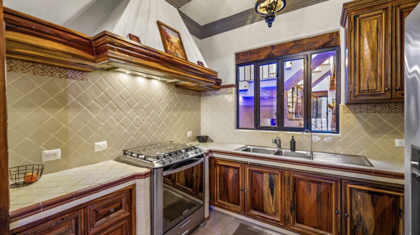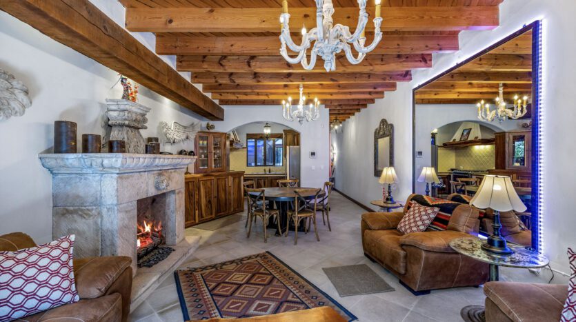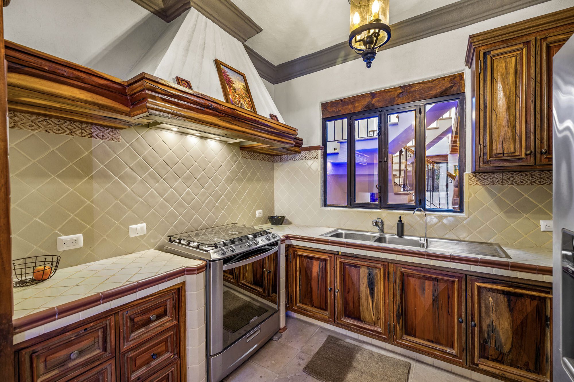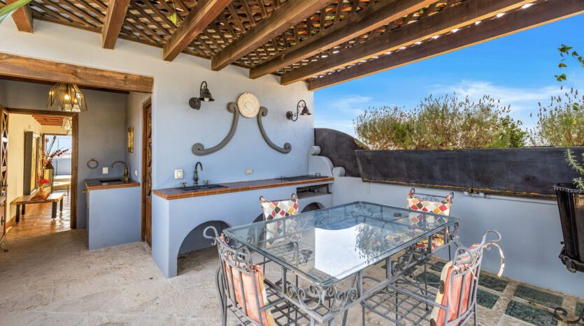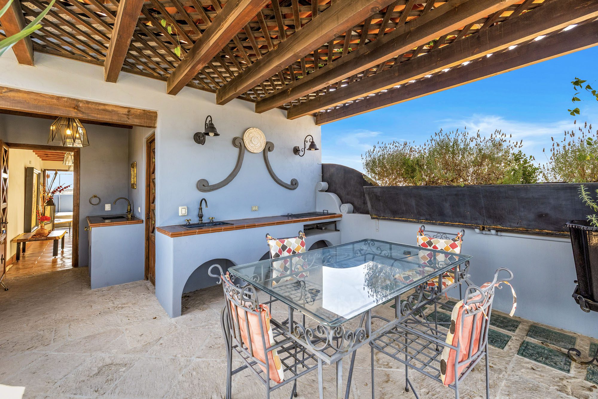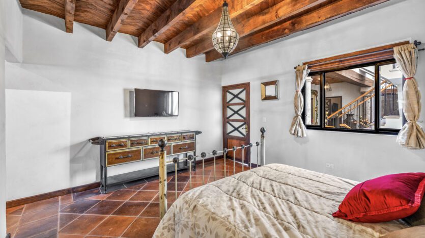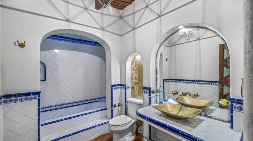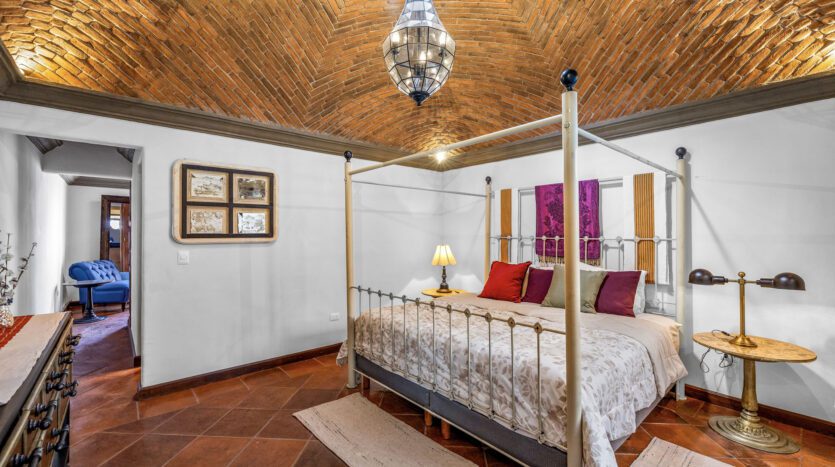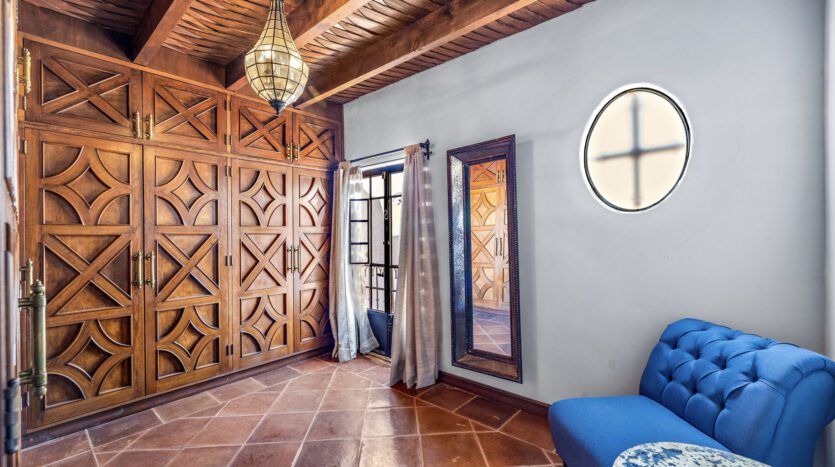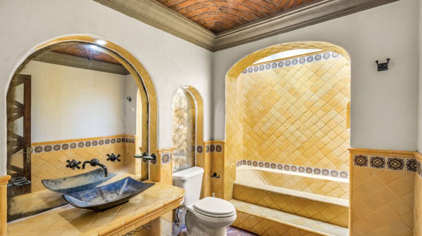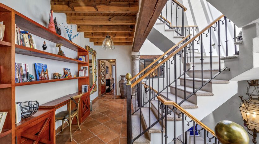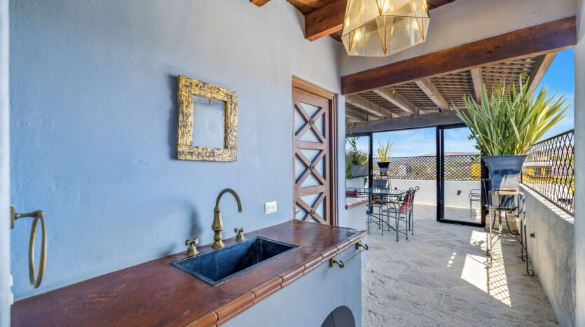 The home’s thoughtful architecture prioritizes “effortless living,” featuring a coveted ground-floor suite and a layout that flows toward the soothing sound of stone fountains. Artisanal finishes are illuminated by bovedas and tejamanil ceilings, new cantera floors, carved wood and strategically placed skylights that bathe the interiors in warmth and elegance.