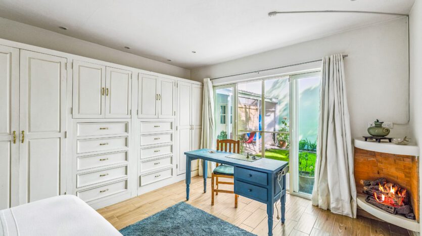 On the ground floor, a masterfully designed bedroom awaits: it boasts its own private bathroom with a luxurious jacuzzi and peaceful views of a meticulously landscaped garden. It’s your very own personal retreat, featuring a cozy fireplace and a huge closet for all your needs.