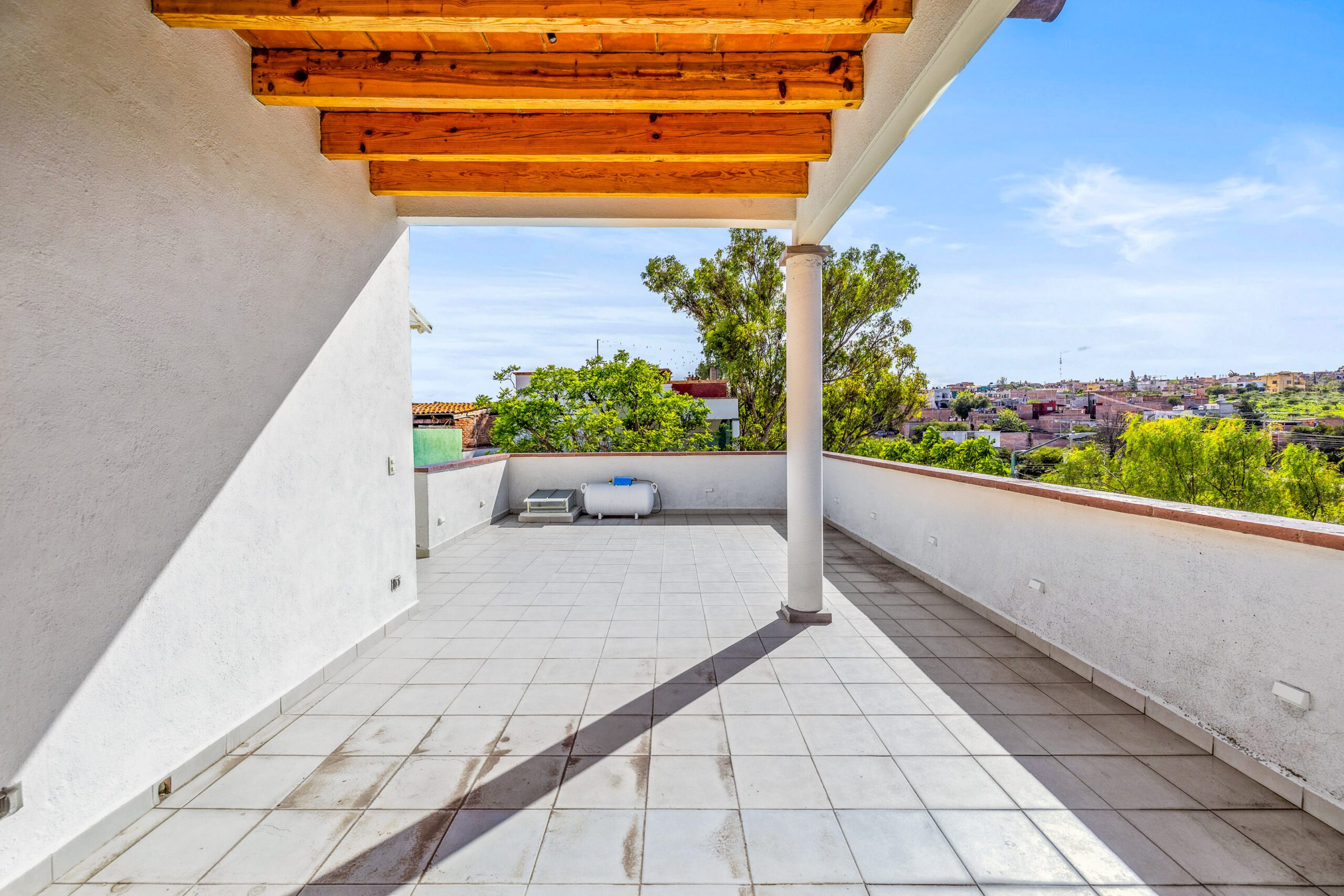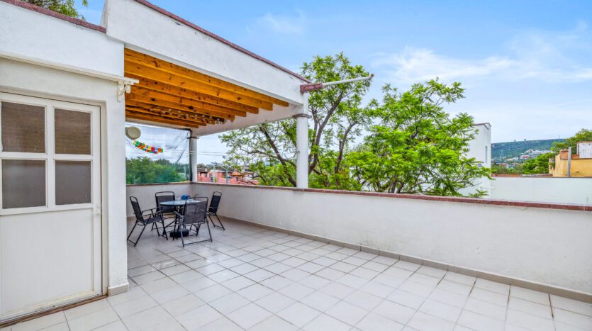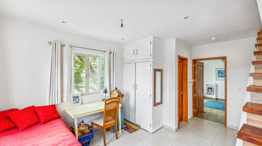 Head upstairs and you’ll find another super cozy bedroom with its private bathroom and tub, ensuring maximum comfort and relaxation. The attached casita also offers its own private terrace, perfect for soaking in the tranquil surroundings.
