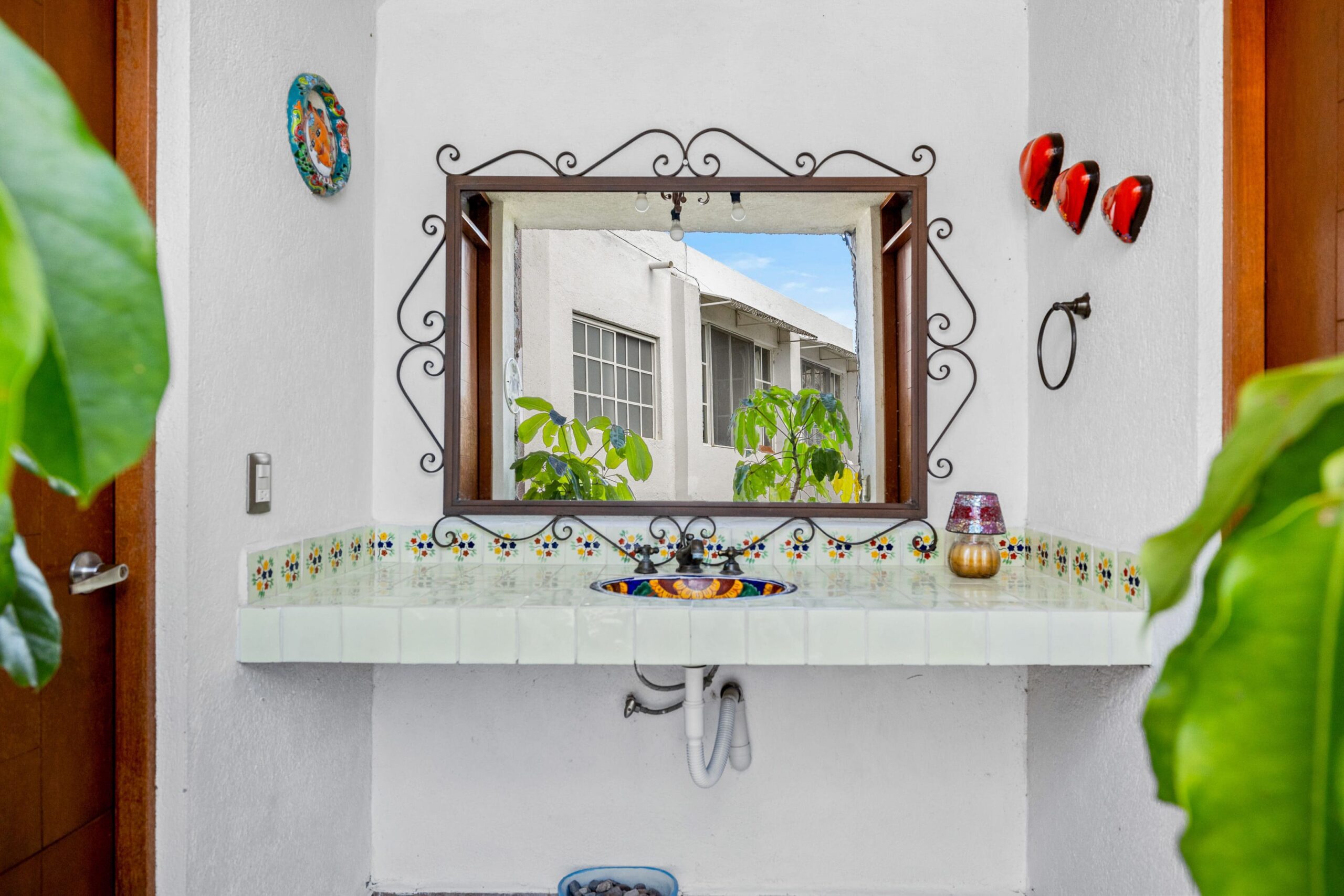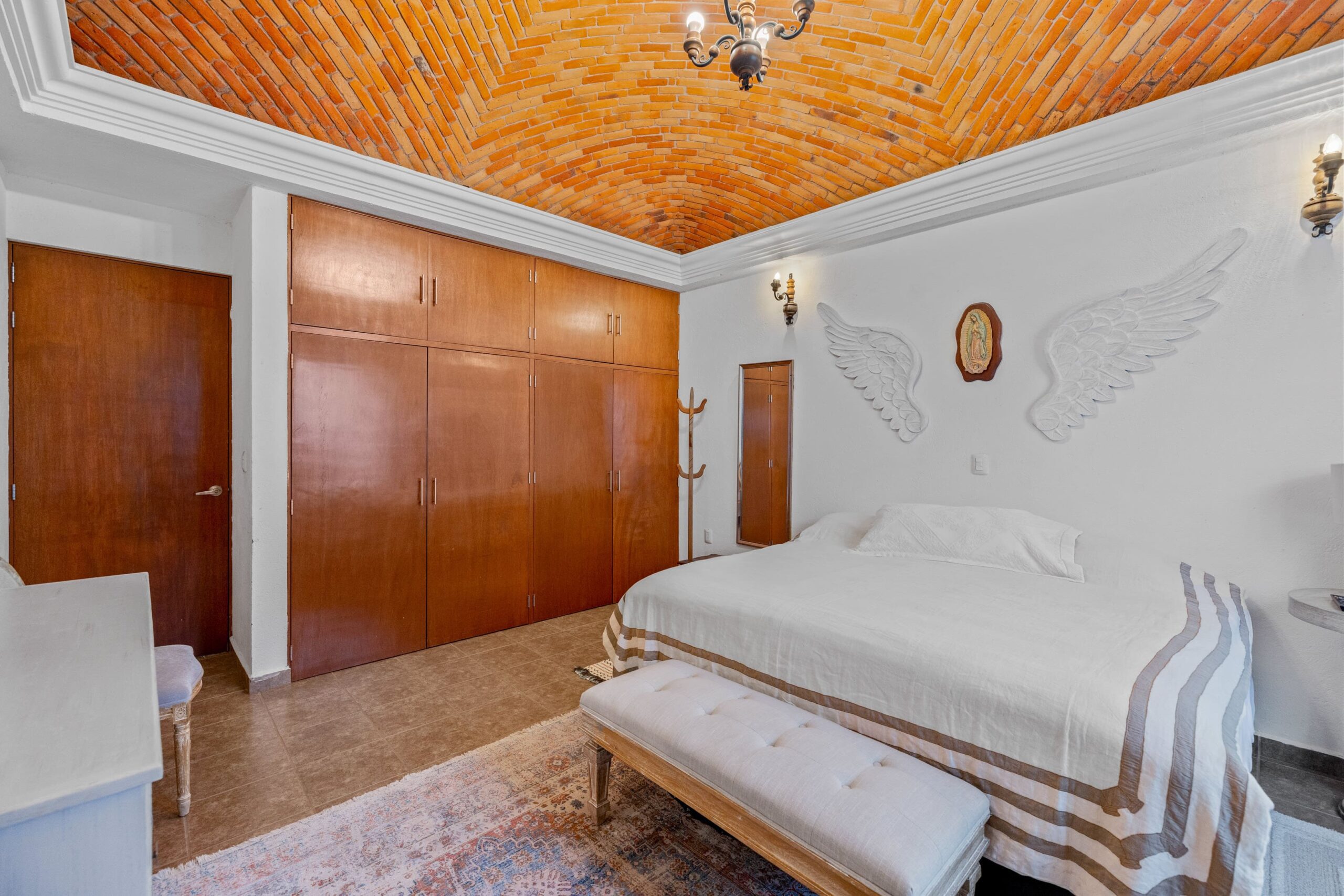 Upon arrival, the property showcases traditional Mexican architectural elements with its distinctive façade and inviting entrance. Inside the main residence, light-filled spaces provide a comfortable atmosphere for everyday living and entertaining. The four bedrooms offer private and well-appointed accommodations.