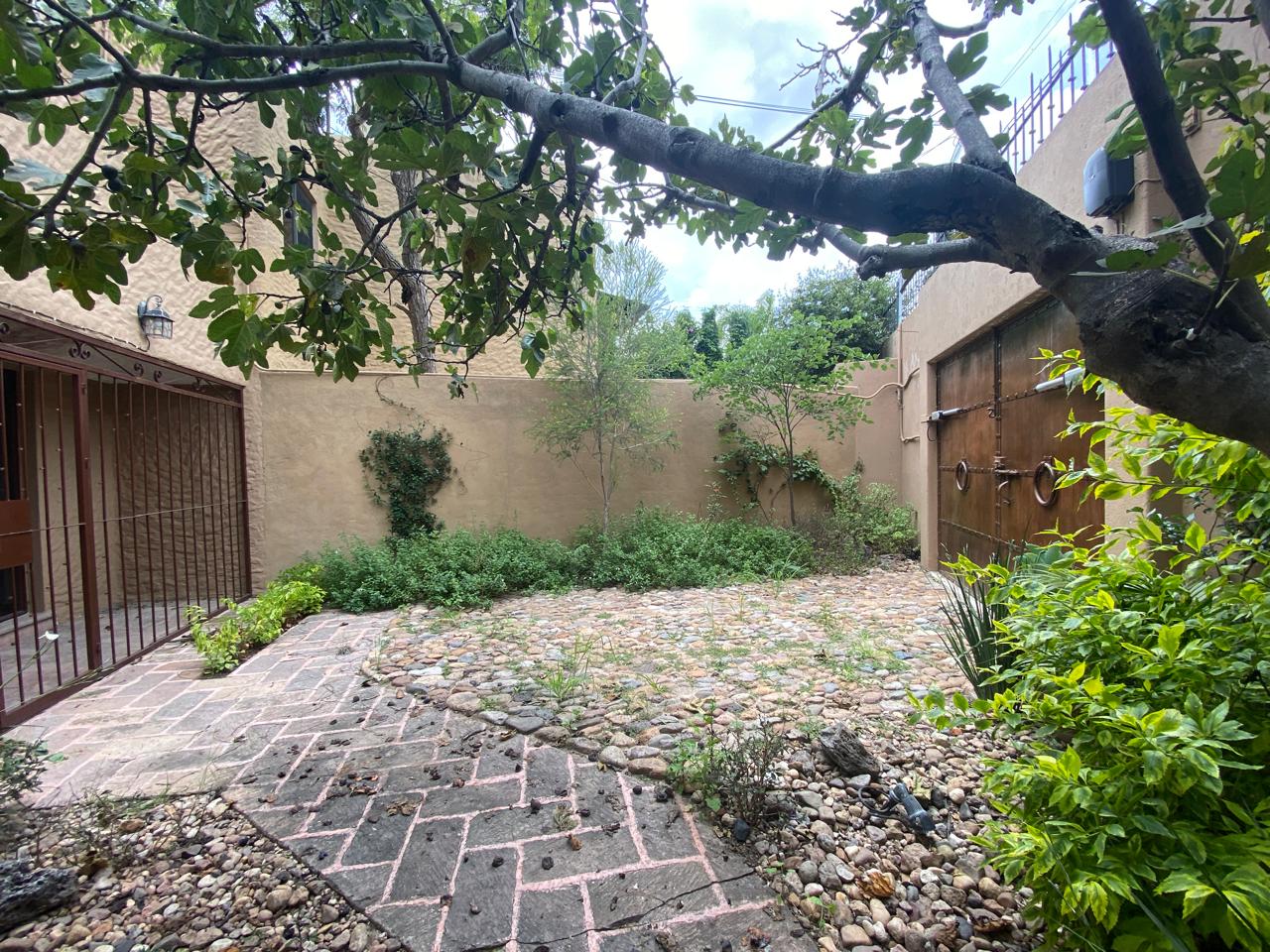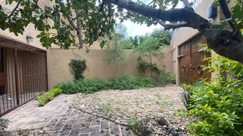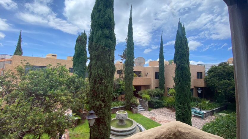 The exterior is a true delight. The property has access to a spectacular central garden, where an elegant fountain and tall cypress trees create a dreamy atmosphere. It is the ideal place for morning strolls or simply enjoying the fresh air. Additionally, the house has private patios, offering personal nooks to bask in the sun.