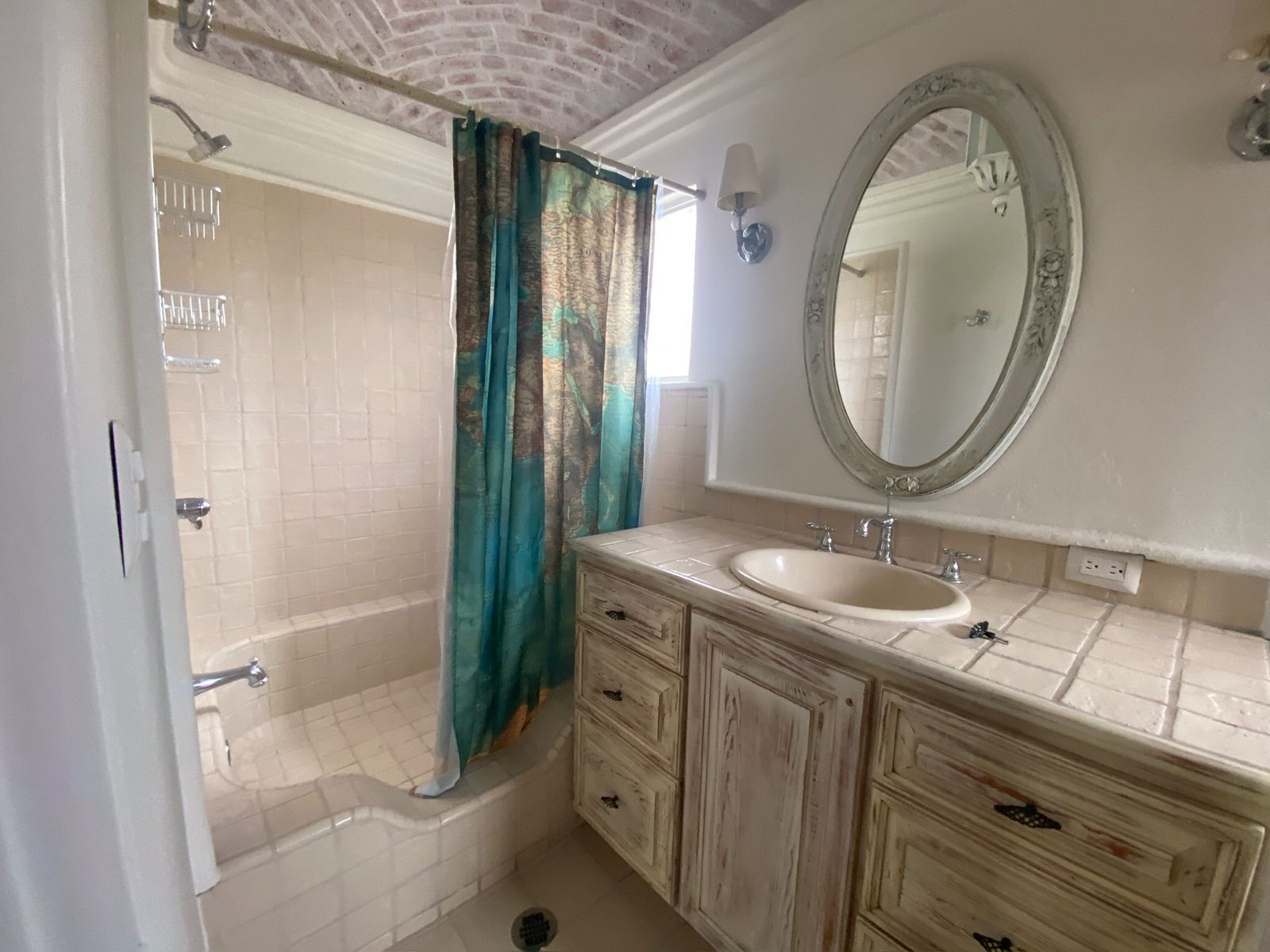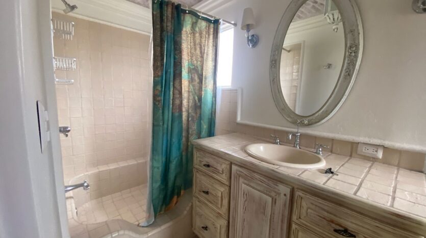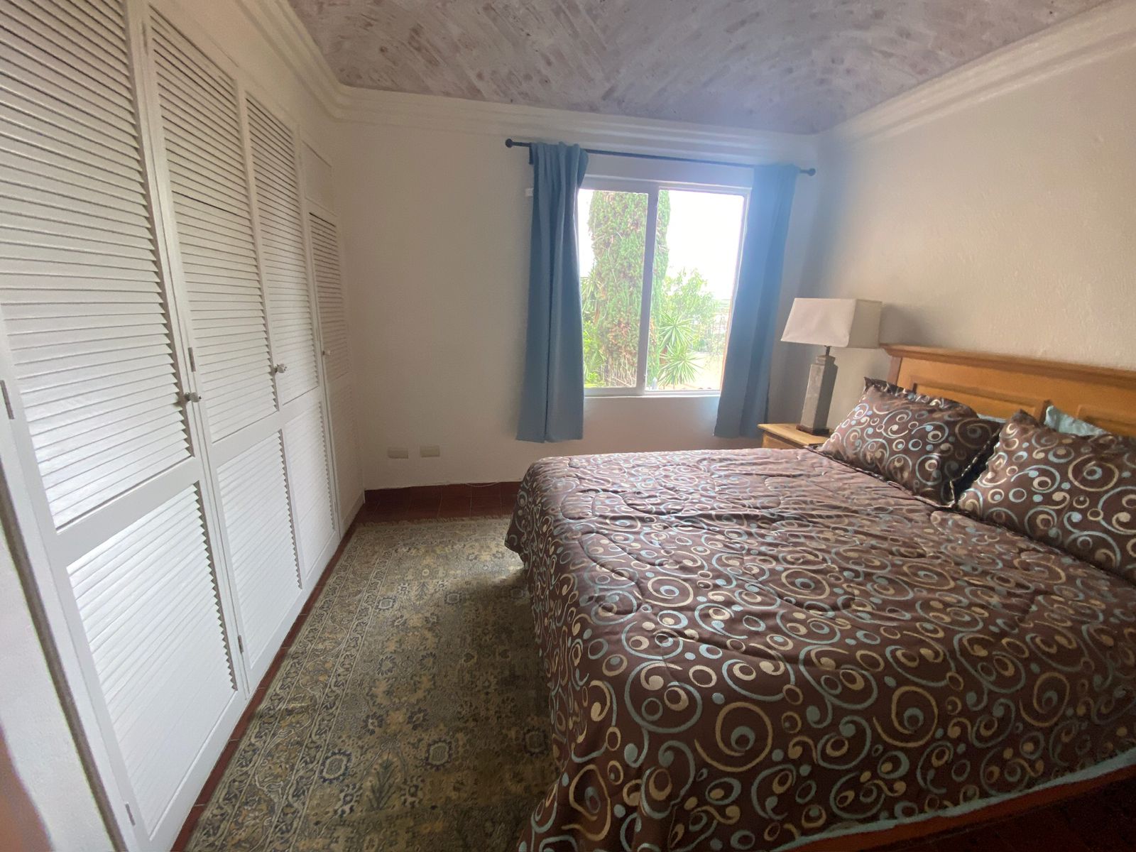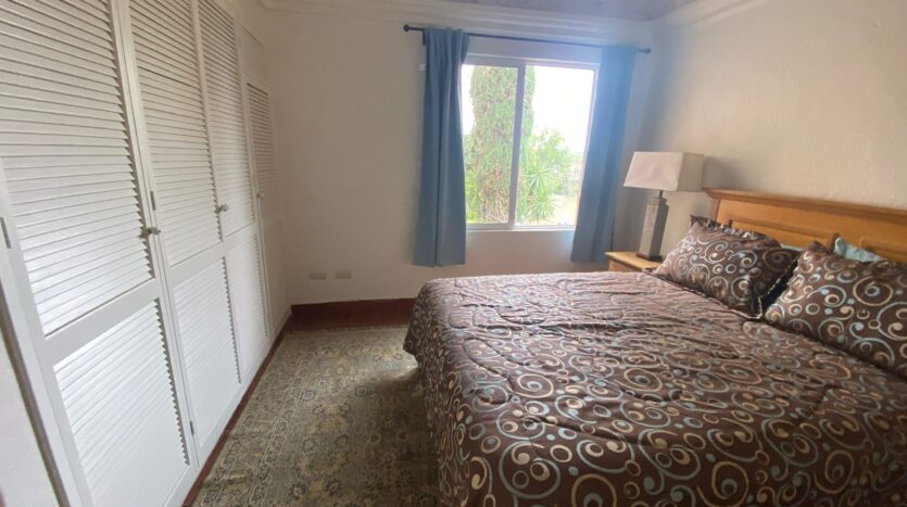 The bedrooms, one of which features the distinctive bóveda ceiling, offer a serene atmosphere for rest. The main bedroom comes with a comfortable queen-size bed, with the flexible option to be configured with two single beds upon request.