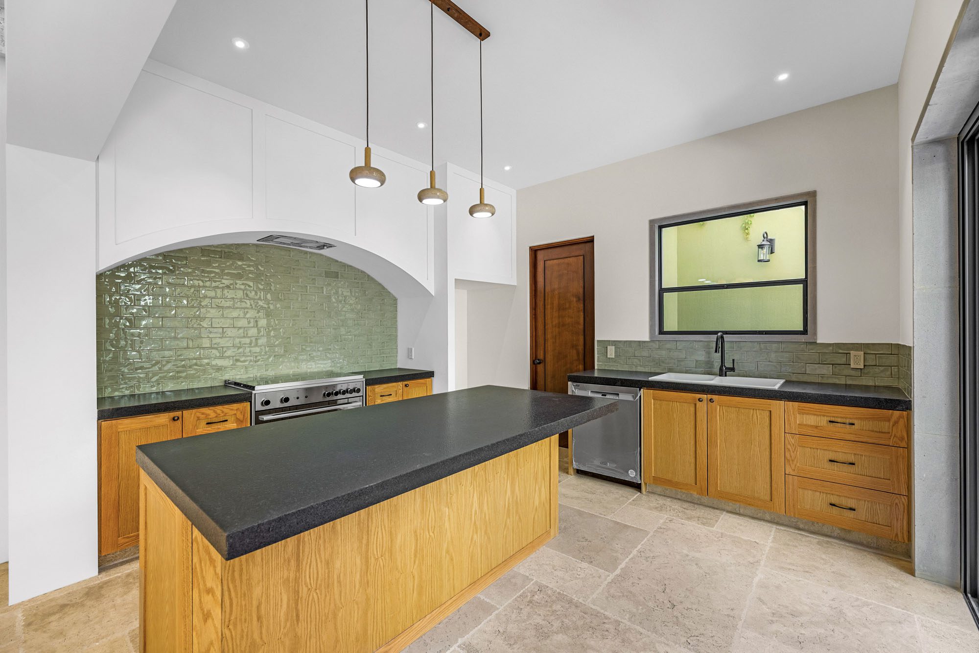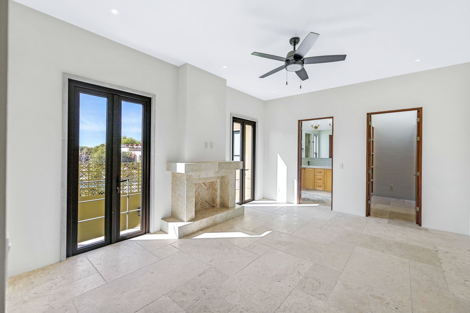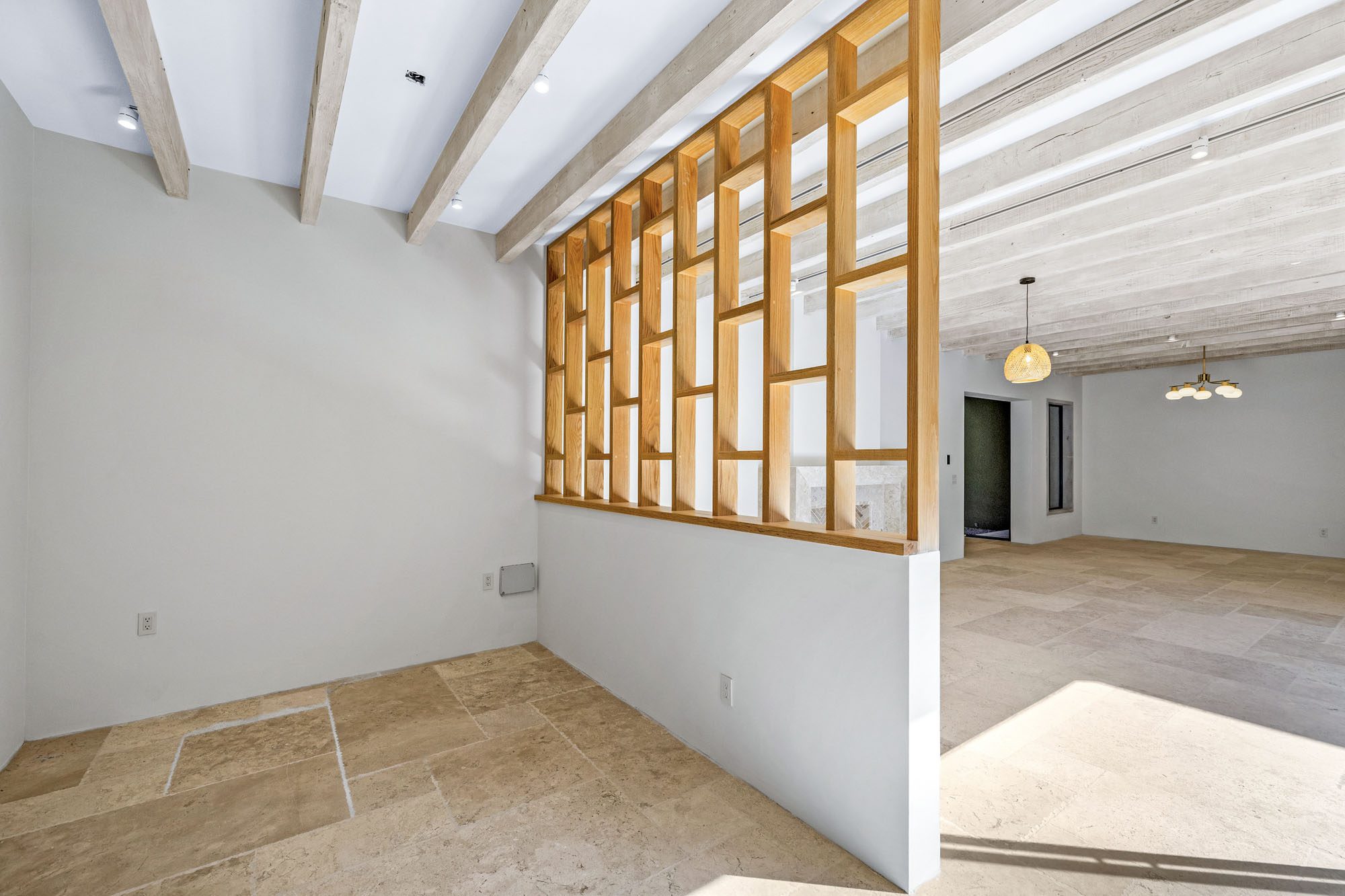 The home features a spacious open-concept layout that seamlessly connects living, dining, and kitchen areas, creating a bright and welcoming atmosphere. A central interior patio fills the home with natural light, enhancing the sense of openness and tranquility throughout.