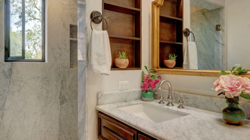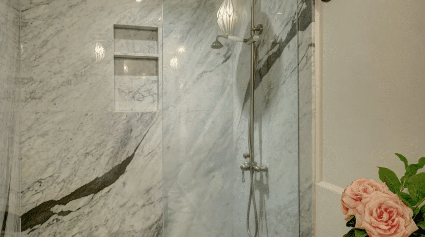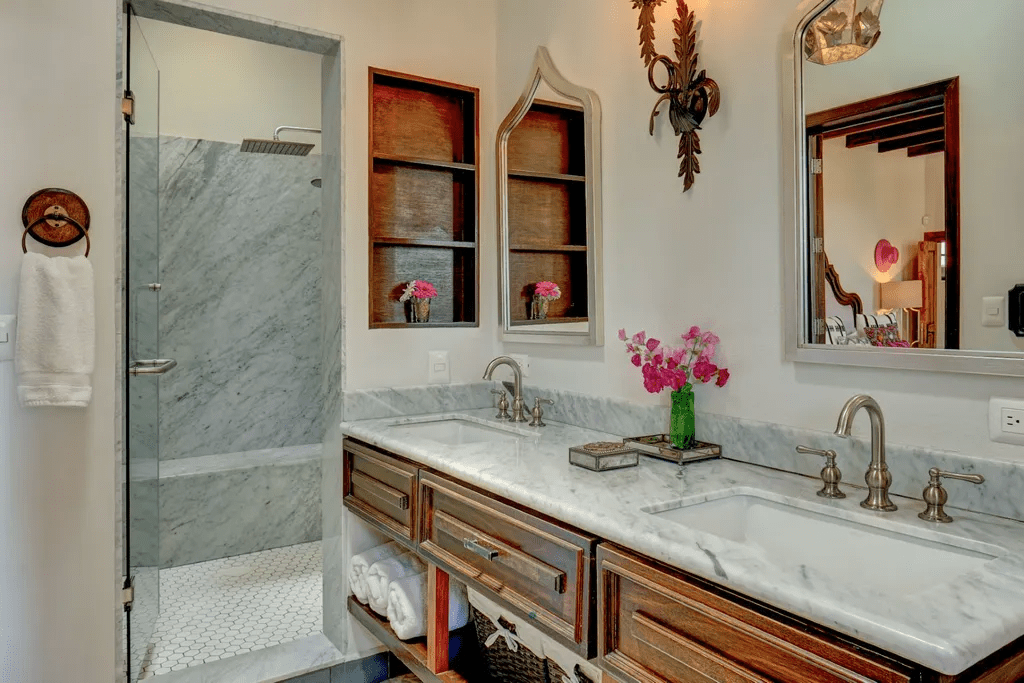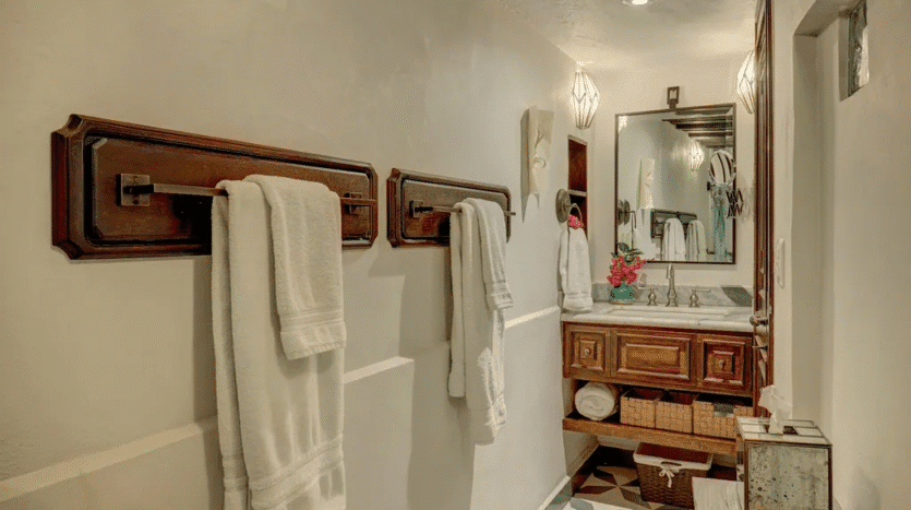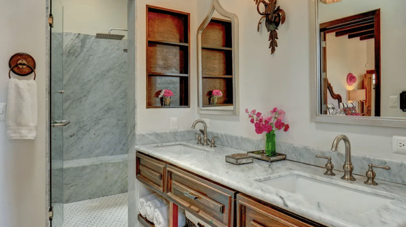 Upstairs, you’ll find two more bedrooms, each with its own private bathroom, exquisitely designed and fully appointed to ensure both comfort and privacy.